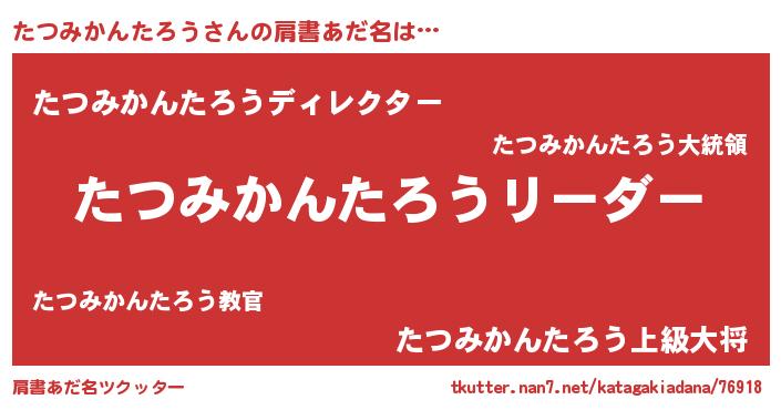 | ポケモン風あだ名 | 『ヒタツミカンタロウ』『タツゴンZ』 |