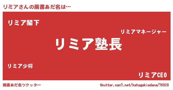 | 意味不明あだ名 | 『とにかく怪しいリミア』『自称リミア』 |