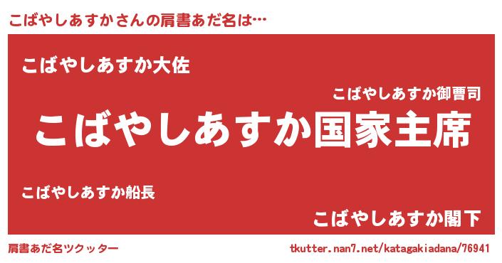 | 意味不明あだ名 | 『こばやしあすかフォーエバー』 |