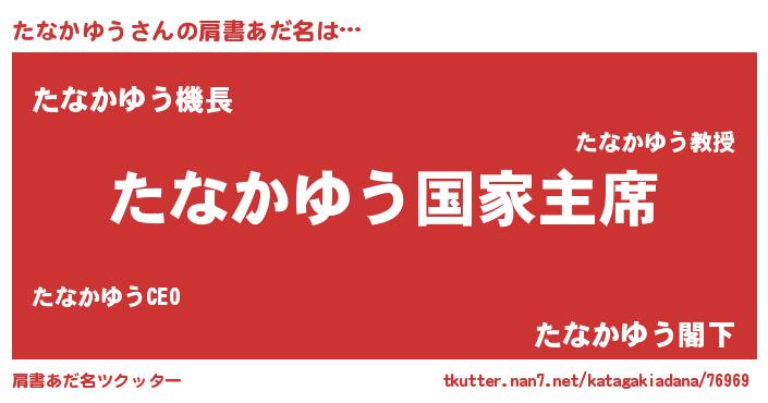| ファンタジー風あだ名 | 『エターナルタナカユウー』『ゼタナトゥ』 |