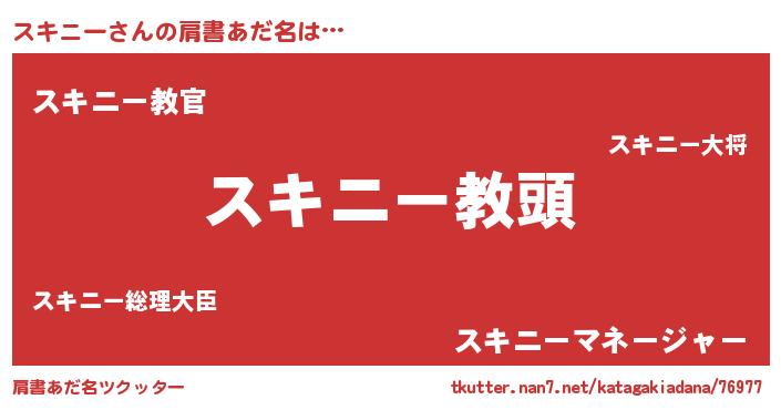 | 意味不明あだ名 | 『永久保存スキニー』『自称スキニー』 |