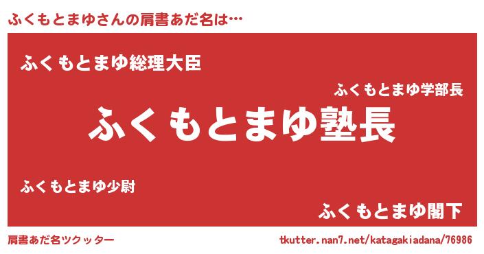 | ヒーロー風カッコイイあだ名 | 『幻影騎士フク』『究極戦士フクモトマユ』 |
