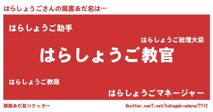 | 女子向けラノベタイトル風あだ名 | 『はらしょうごが死なない童話 林檎のはらしょうごの診療簿』 |