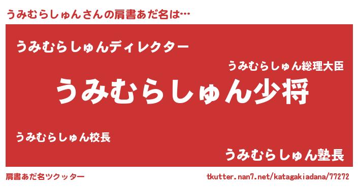 | 女子向けラノベタイトル風あだ名 | 『うみむらしゅんの玉の輿計画!』 |