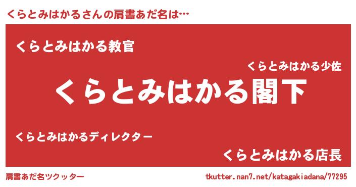 | 意味不明あだ名 | 『自称くらとみはかる』 |