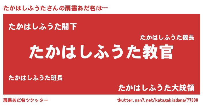 | 男性向けラノベタイトル風あだ名 | 『この素晴らしい世界にたかはしふうたを!』 |