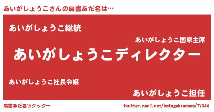 | 欧米人風あだ名 | 『アンジェラ・あいがしょうこ』 |