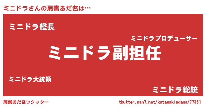 | ヒーロー風カッコイイあだ名 | 『ネオミニドラ』『ウルトラ戦士ミニドラ』 |