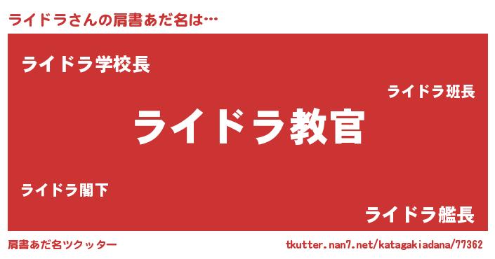 | 男性向けラノベタイトル風あだ名 | 『この素晴らしい世界にライドラを!』 |