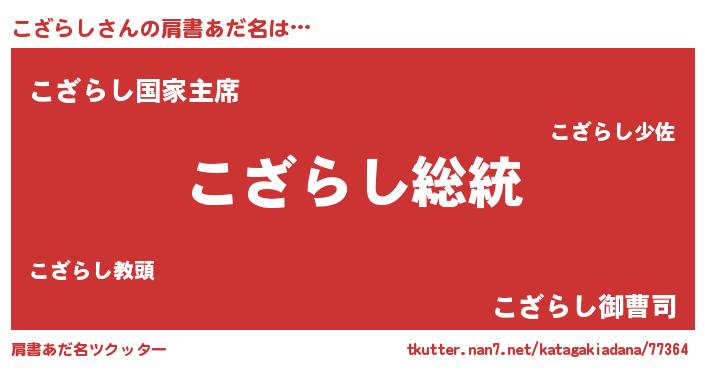 | 意味不明あだ名 | 『自称こざらし』『こざらしフォーエバー』 |