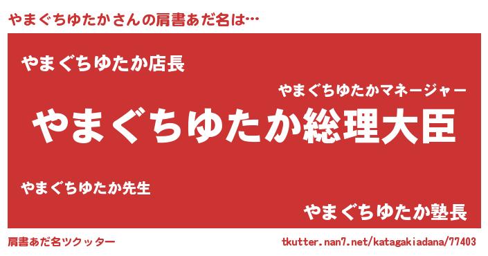 | 男性向けラノベタイトル風あだ名 | 『やはりやまぐちゆたかの青春ラブコメはまちがっている 』 |
