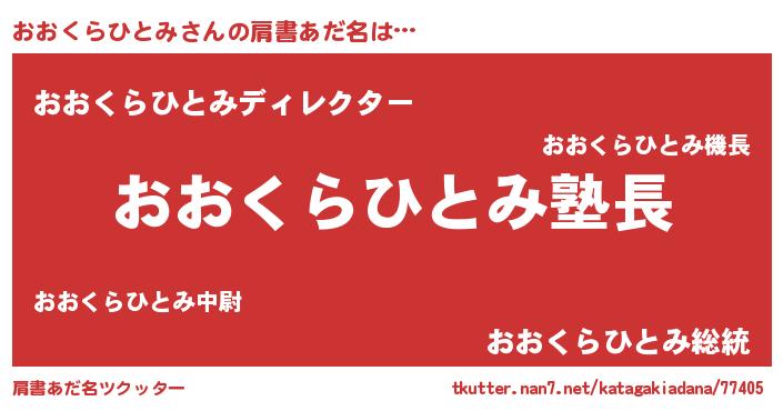 | 意味不明あだ名 | 『とにかく怪しいおおくらひとみ』 |