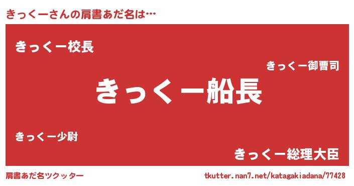 | 男性向けラノベタイトル風あだ名 | 『緋弾のキックー』『きっくーの憂鬱』 |