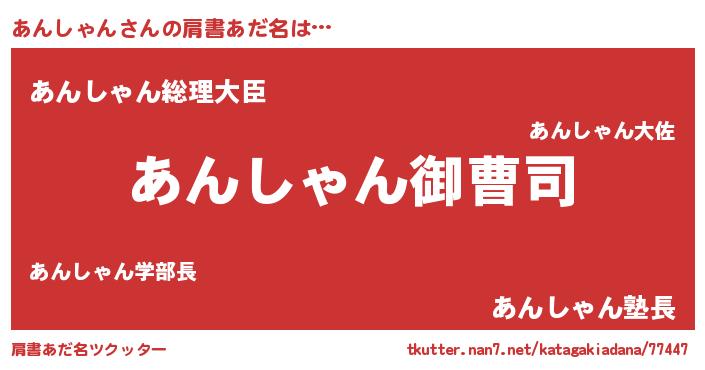 | 2回繰り返すあだ名 | 『あんあん』『ああんん』『ぬるぬる』 |