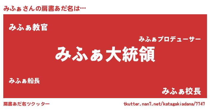 | 男性向けラノベタイトル風あだ名 | 『やはりみふぁの青春ラブコメはまちがっている 』 |