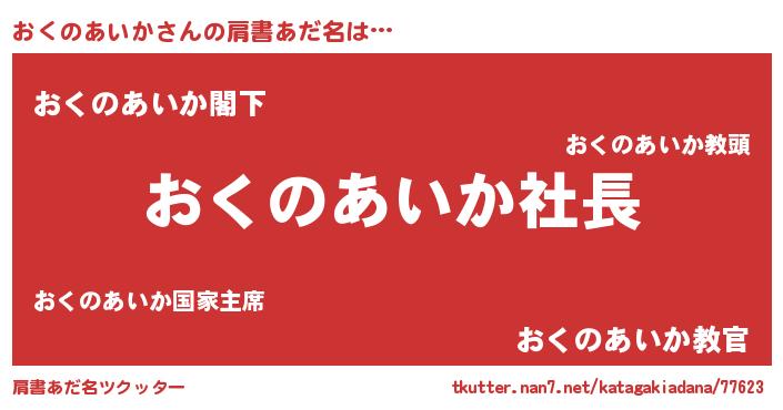 | 男性向けラノベタイトル風あだ名 | 『おくのあいかの憂鬱』 |