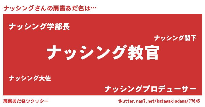 | 意味不明あだ名 | 『住所不定無職ナッシング(77歳)』 |