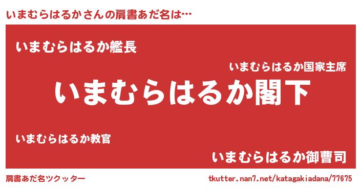 | 男性向けラノベタイトル風あだ名 | 『Re:いまむらはるかから始める異世界生活』 |