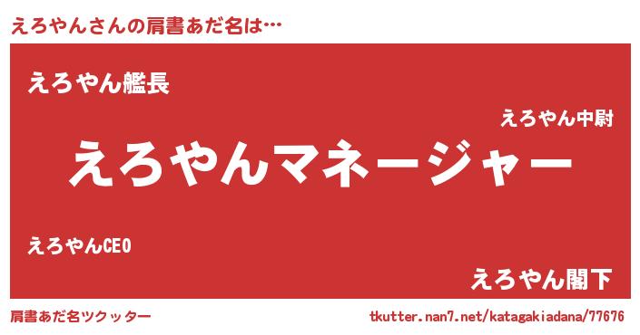 | 意味不明あだ名 | 『自称えろやん』『ヨモギ科えろやん属』 |
