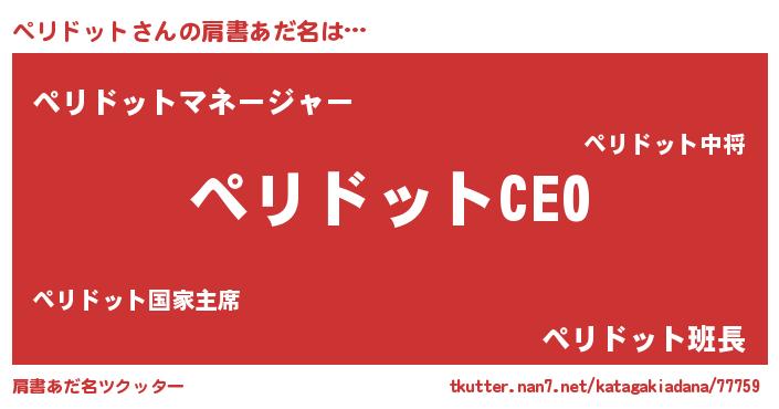 | ポケモン風あだ名 | 『ペリチュウ』『ペリゴンZ』 |
