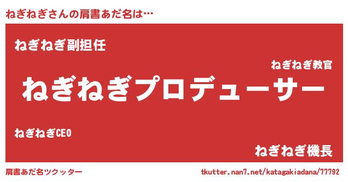 | 男性向けラノベタイトル風あだ名 | 『ねぎねぎに滅ぼされるだけの簡単なお仕事です』 |