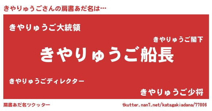 | 男性向けラノベタイトル風あだ名 | 『緋弾のキヤリュウゴ』 |