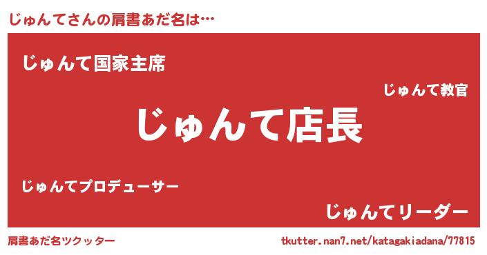 | 欧米人風あだ名 | 『マイケルじゅんて』『ウサインじゅんて』 |