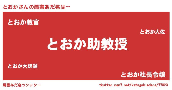 | ヒーロー風カッコイイあだ名 | 『正義の使者とおか』『仮面トオダー』 |