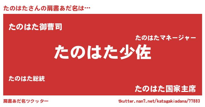 | 意味不明あだ名 | 『もやし科たのはた属』『自称たのはた』 |