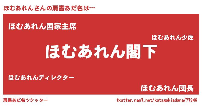 | ファンタジー風あだ名 | 『ゼホムトゥ』『エターナルホムアレンー』 |