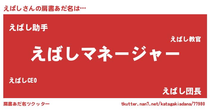 | 欧米人風あだ名 | 『アンジェラ・えばし』『ダニエルえばし』 |