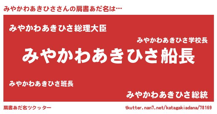 | 意味不明あだ名 | 『みやかわあきひさフォーエバー』 |