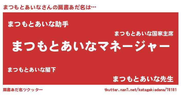| 可愛いあだ名 | 『まつちゅっちゅ』『まつもとあいなママ』 |