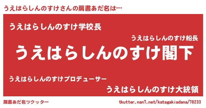 | 意味不明あだ名 | 『自称うえはらしんのすけ』 |