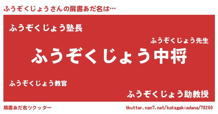 | ポケモン風あだ名 | 『フウキング』『ヒフウゾクジョウ』 |