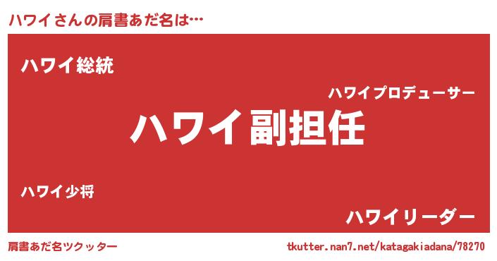 | ヒーロー風カッコイイあだ名 | 『ネオハワイ』『超時空戦士ハワイ』 |