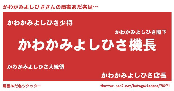 | ヒーロー風カッコイイあだ名 | 『スーパーカワカミヨシヒサ』 |
