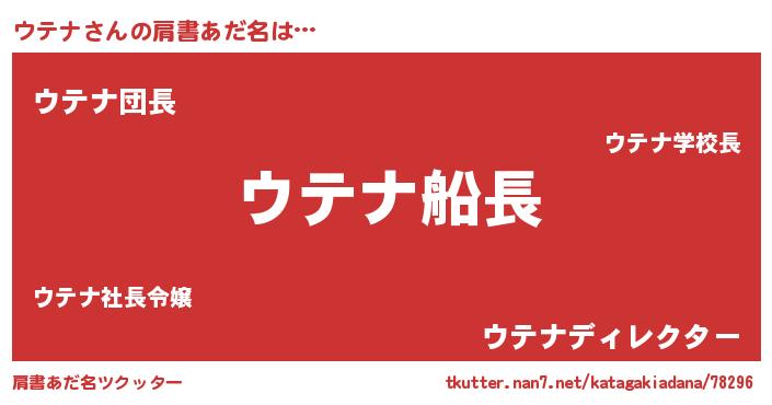 | 男性向けラノベタイトル風あだ名 | 『緋弾のウテナ』『はたらくウテナさま!』 |