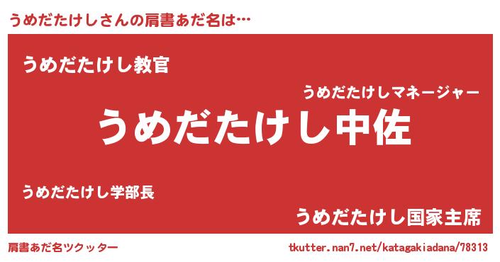 | ヒーロー風カッコイイあだ名 | 『仮面ウメダー』『愛の使者うめだたけし』 |