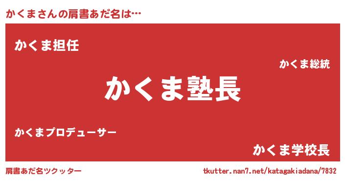 | 意味不明あだ名 | 『とにかく怪しいかくま』『自称かくま』 |