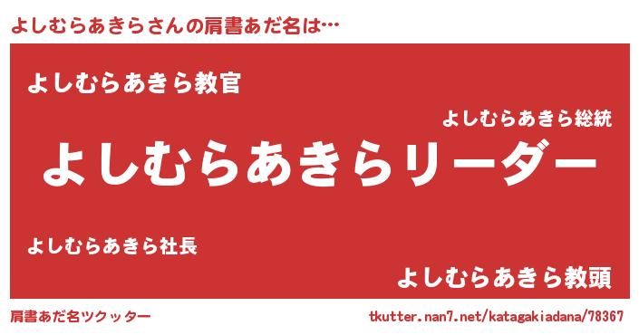 | 意味不明あだ名 | 『とにかく怪しいよしむらあきら』 |