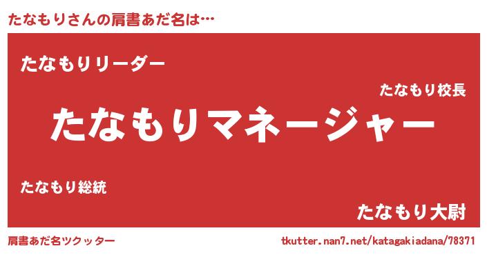 | 男性向けラノベタイトル風あだ名 | 『たなもりに滅ぼされるだけの簡単なお仕事です』 |