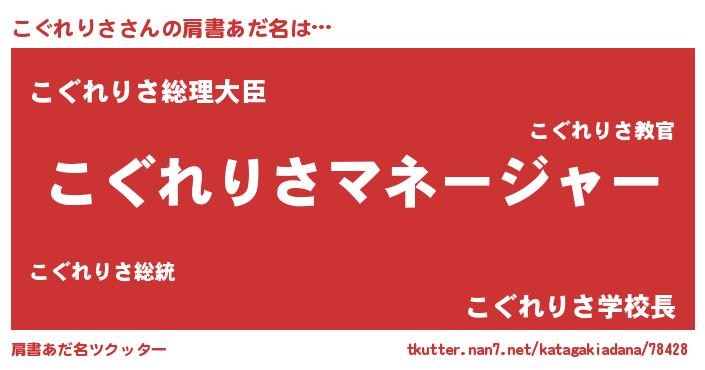 | 意味不明あだ名 | 『こぐれりさフォーエバー』 |