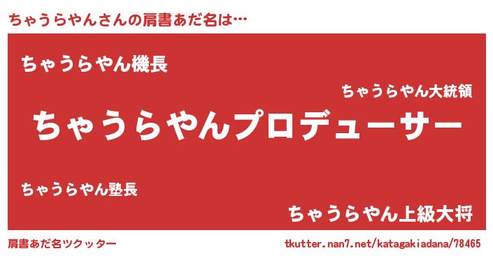 | 男性向けラノベタイトル風あだ名 | 『ちゃうらやんに滅ぼされるだけの簡単なお仕事です』 |
