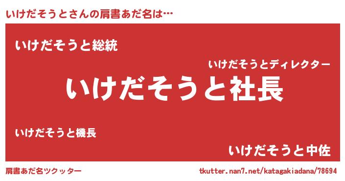 | 胡散臭い通販商品みたいなあだ名 | 『億万長者になれるブレスレット…その名も「いけだそうと」』 |
