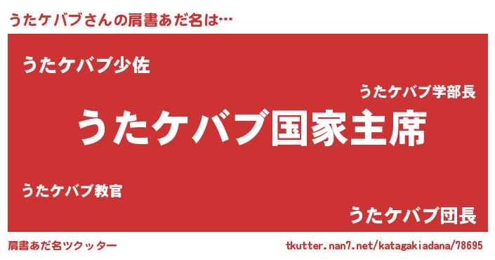 | 意味不明あだ名 | 『うたケバブフォーエバー』 |