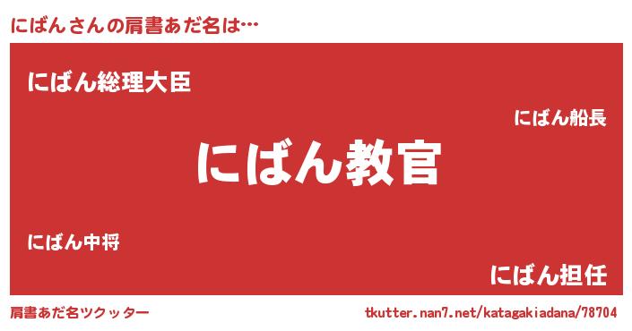 | 男性向けラノベタイトル風あだ名 | 『この素晴らしい世界ににばんを!』 |