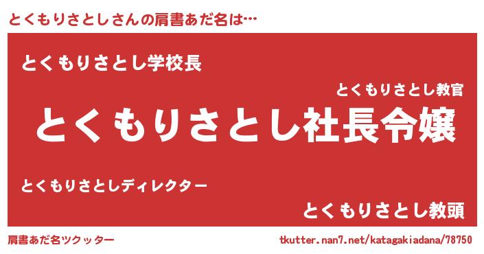 | 男性向けラノベタイトル風あだ名 | 『トクモリサトシアートオンライン』 |