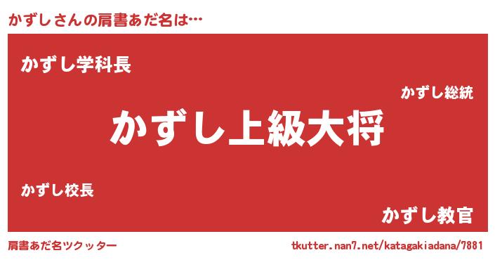 | 男性向けラノベタイトル風あだ名 | 『転生したらかずしだった件』 |