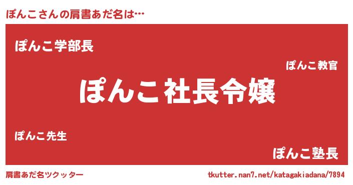 | 男性向けラノベタイトル風あだ名 | 『ぽんこの憂鬱』『魔弾の王とぽんこ』 |